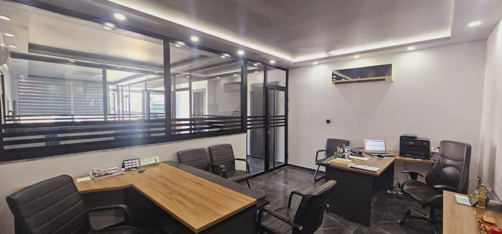 - Lüks yapılı patron odası (toplantı masalı, özel tasarım)